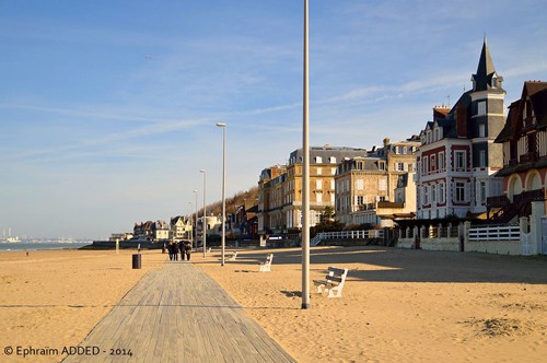 Nous cherchions où Monet avait posé son chevalet pour peindre ses tableaux Plage à Trouville et L'hôtel des Roches Noires.